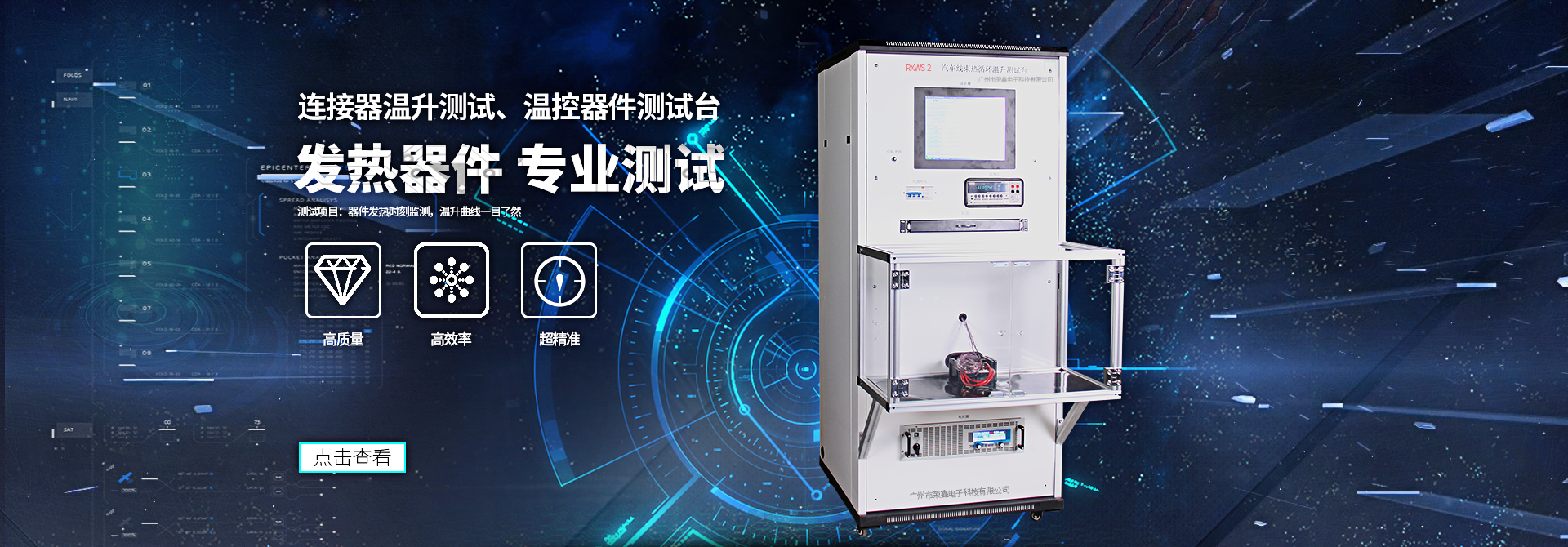廣州市榮鑫電子科技有限公司坐落于美麗的花城廣州,公司自2002年成立以來(lái),憑借雄厚的技術(shù)實(shí)力和速捷的配套生產(chǎn)能力,以及良好的信譽(yù),贏得了全國(guó)多家著名企事業(yè)單位的青睞。公司現(xiàn)推出八大系列產(chǎn)品:溫度溫升測(cè)試儀系列、產(chǎn)品安全測(cè)試系列、負(fù)載柜系列、電容器測(cè)試系列、鎮(zhèn)流器、觸發(fā)器測(cè)試系列、LED燈具測(cè)試系列、電機(jī)、壓縮機(jī)測(cè)試系列、家電測(cè)試系列,供客戶選擇。 一直以來(lái)我們專注高端產(chǎn)品,拒絕平庸,致力打造智能、人性化的檢測(cè)設(shè)備,以客制化定制為服務(wù)中心,理性的引用客戶的要求與建議,滿足客戶需求為己任。同時(shí)我們?cè)诮?jīng)營(yíng)理念上:以精、誠(chéng)的精神為方針,以為客戶提供先進(jìn)高端產(chǎn)品與優(yōu)質(zhì)服務(wù)為宗旨,從而與客戶取得共贏!這都源于我們的定制服務(wù)。公司擁有專業(yè)的研發(fā)團(tuán)隊(duì)、專業(yè)的銷(xiāo)售團(tuán)隊(duì)及專業(yè)的售后服務(wù)團(tuán)隊(duì),...